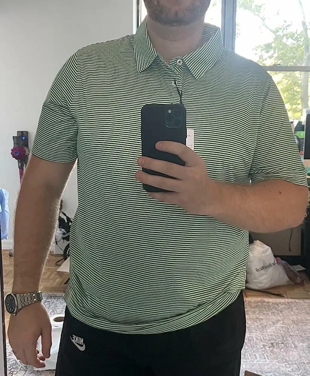 I adore the brand and the quality products they provide. But the collar sizing is way off. I am 5'10 and 190lbs usually wear shirts with collars 15.5-16 inches, but this polo is way too large in the collar. I can barely wear it without buttoning up the top button. The material is stretchy and comfortable. The collar is the only discomfort I am getting since it is enormous, It feels like 2-3 sizes up in length and keeps flopping around.
